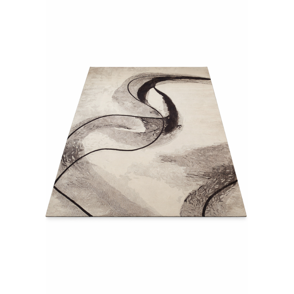 The Smoke & Espresso Rug is a sophisticated piece that blends modern artistry with timeless elegance. Featuring an abstract design in a harmonious palette of soft smoke gray and deep espresso tones, this rug creates a sense of fluidity and movement across its surface. The sweeping curves and layered textures evoke a contemporary yet organic feel, making it an ideal centerpiece for living rooms, lounges, or upscale office spaces.