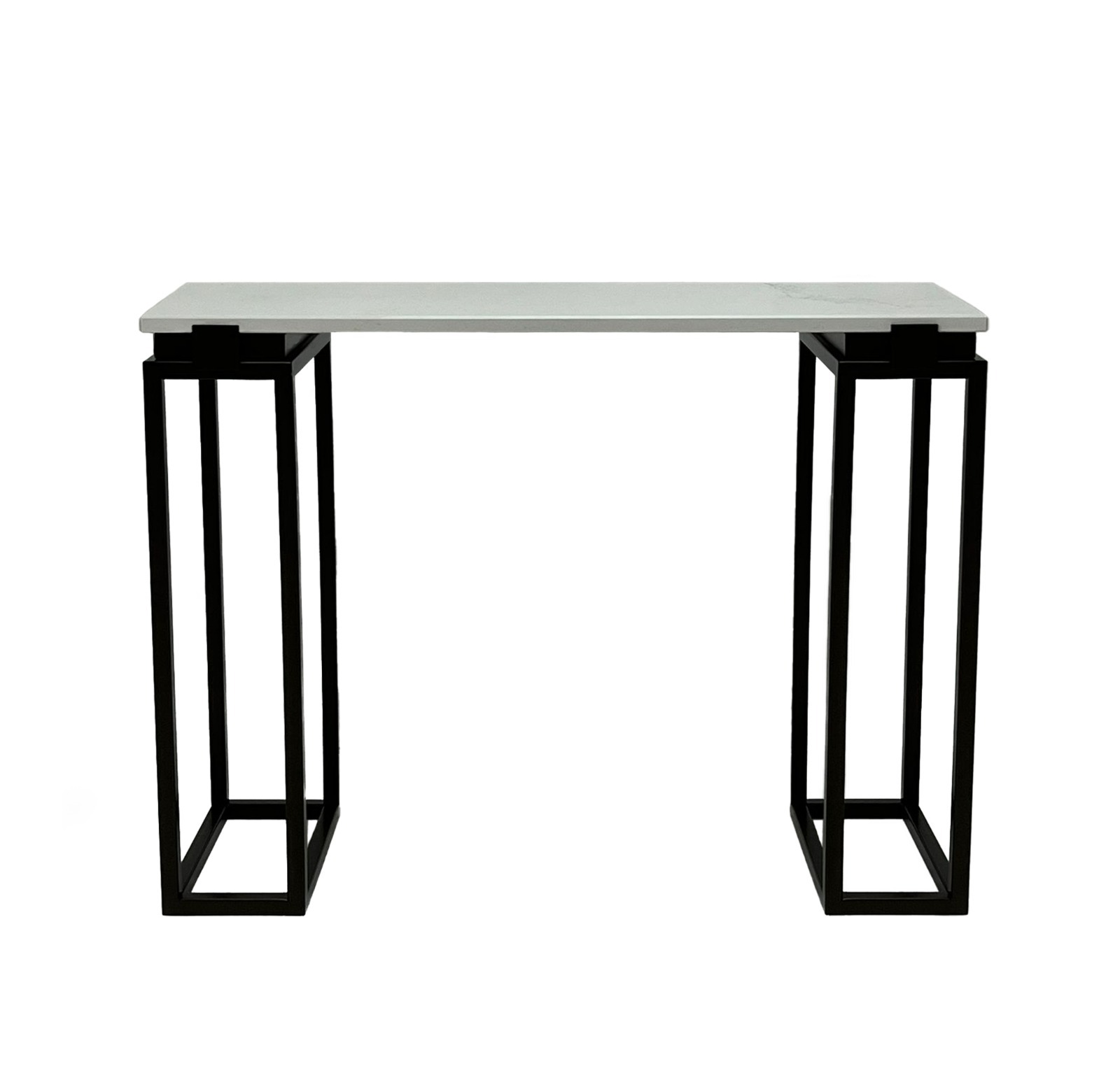 The Alys Table is designed with a metal structure in a Dark Bronze steel finish and topped with a Carrara Marble top.