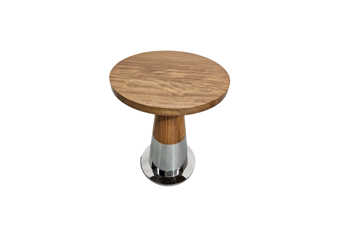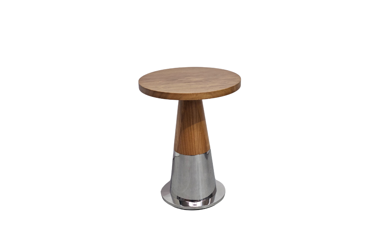 A striking fusion of rich Iroko wood and polished stainless steel, the Anthony Table brings sculptural elegance to any space. With its sleek tapered base and refined natural finish, it’s a timeless accent that balances warmth and modern sophistication.