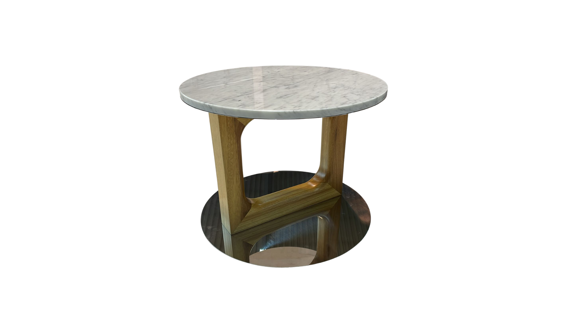 Sleek in form and balanced in materiality, the Elan Table brings a quiet elegance to modern interiors. A round marble top floats above sculpted wood legs, grounded by a reflective metal base that subtly anchors the composition. Thoughtfully proportioned and effortlessly graceful, Elan is the definition of refined simplicity.
