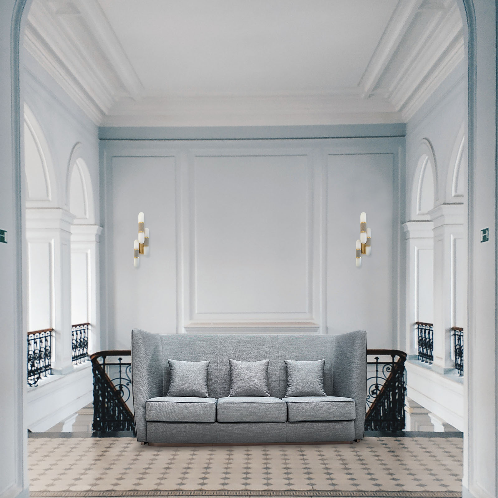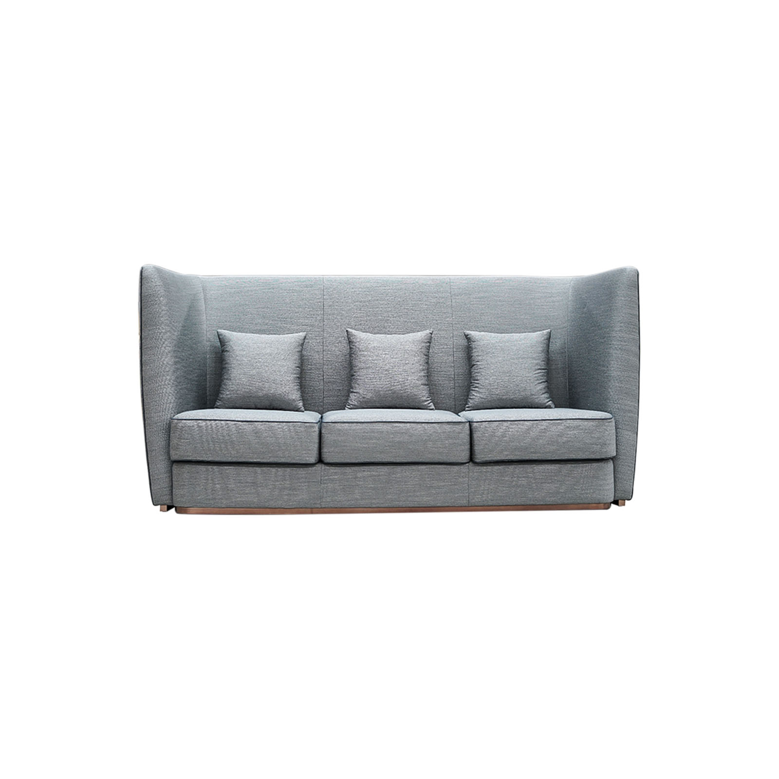 Elegant 3 seater tight back sofa with metal base. Includes three loose pillows. Sofa piping optional.