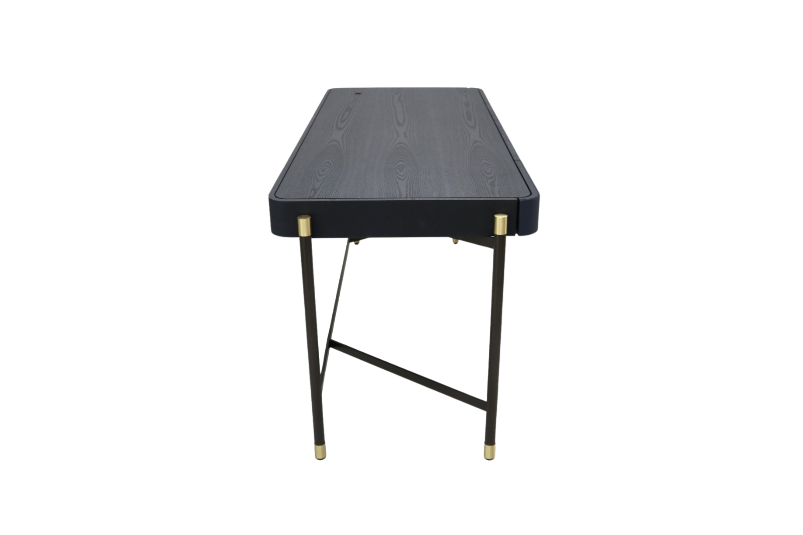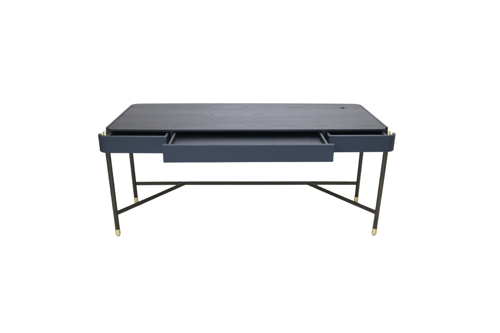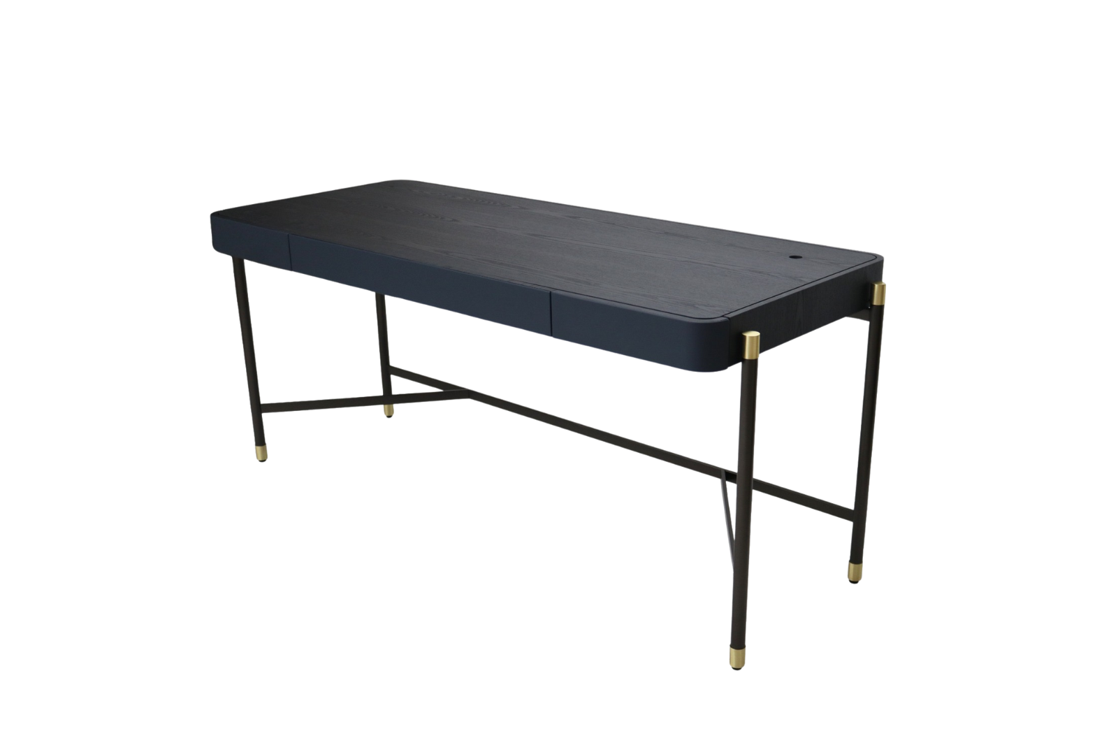 A modern expression of elegance, the Whitmore Desk blends tailored craftsmanship with architectural simplicity. Accented with refined metallic details, its slender profile and sleek surface create a sophisticated focal point for any elevated workspace. Designed to inspire productivity in the most discerning interiors.
