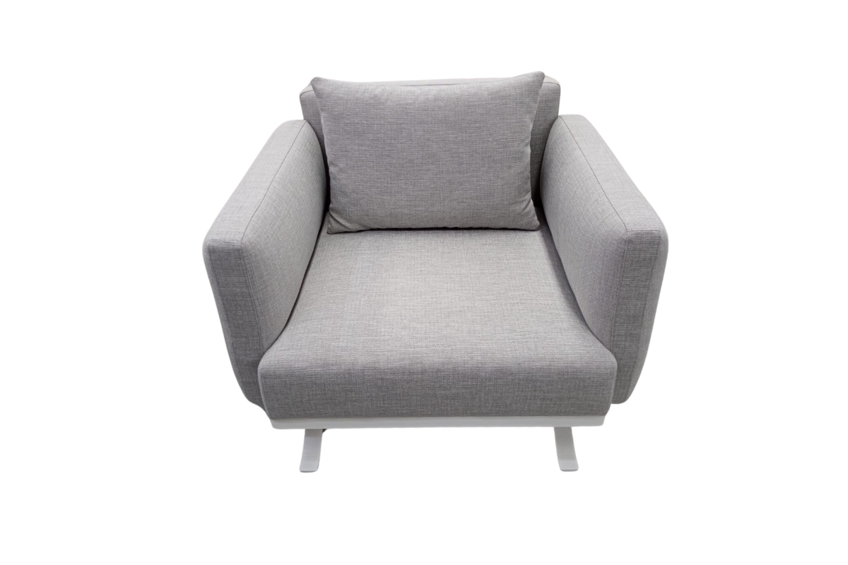 Experience understated luxury with the Xanadu Armchair — a modern classic designed for those with a taste for refined comfort. Wrapped in a smooth gray fabric and framed by sculptural armrests, Xanadu offers generous seating and plush back support for a perfectly balanced silhouette. Sleek metal legs complete the look, making it an elegant anchor piece for any sophisticated interior.